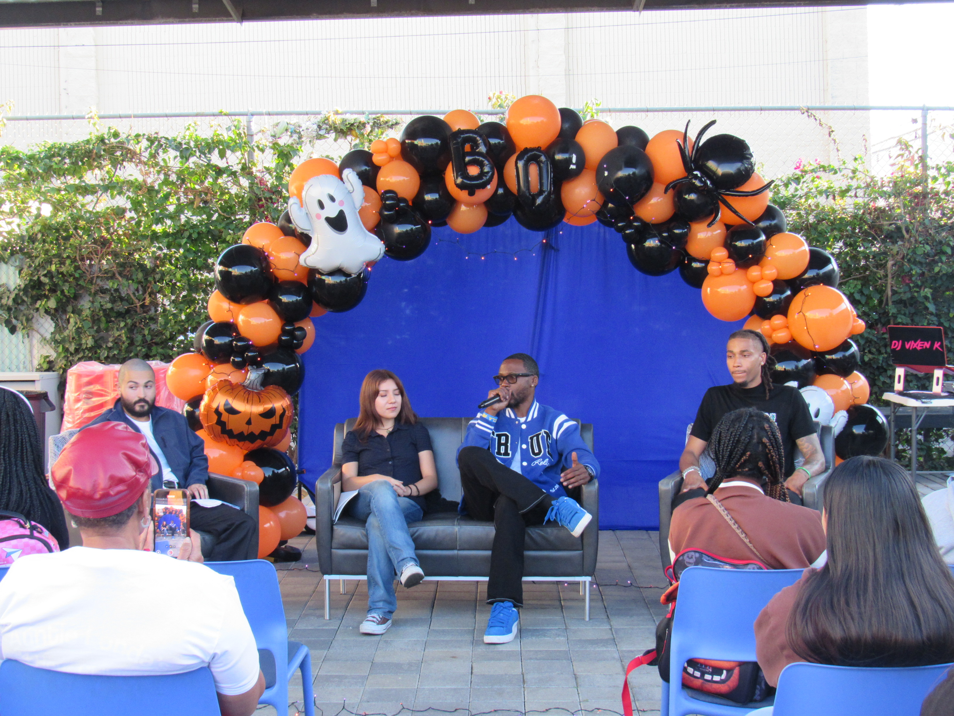 The day’s event featured a vibrant college resource fair, an engaging panel discussion, lively food, and music that brought the community together. Panelists included Catherine Sanchez, Kyle Maddox, Student Government President at West Los Angeles College, and Giodan Williams, President of the Hope & Healing Wellness Foundation. The event was planned by the South Los Angeles Movement (S.L.A.M.) Prevention Coalition partners: